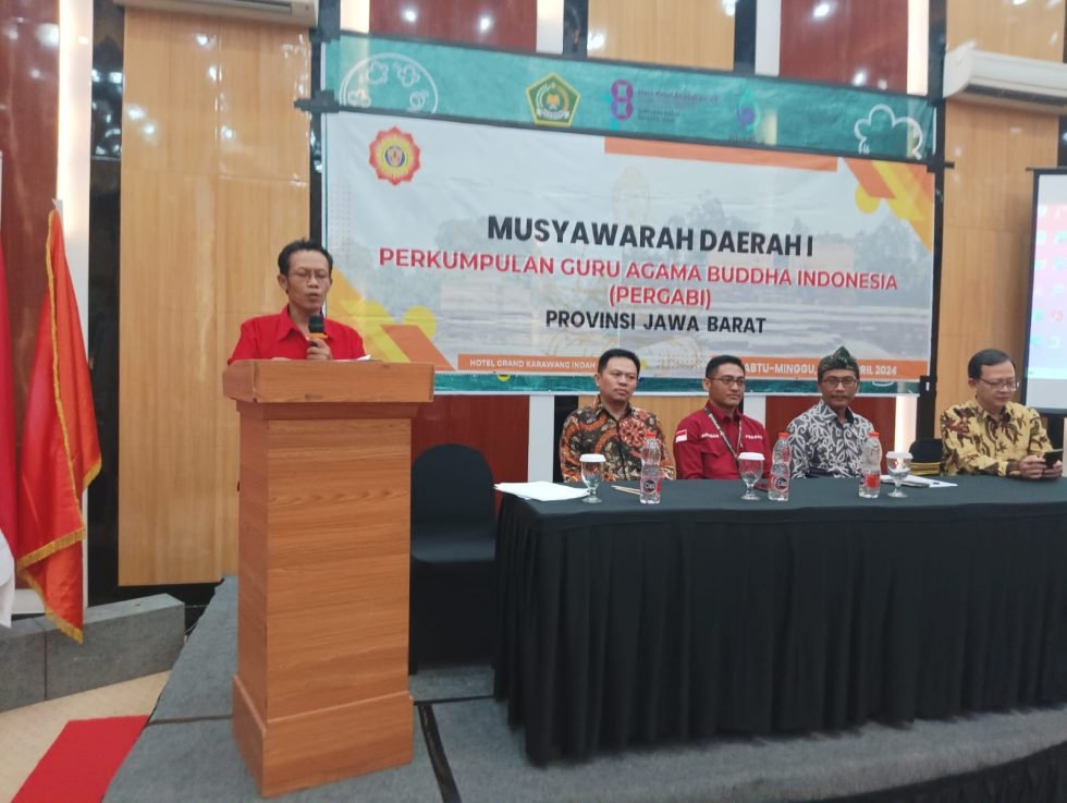 Karawang, 28 April 2024. Musyawarah Daerah Pertama Perkumpulan Guru Agama Buddha Indonesia (PERGABI) Provinsi Jawa Barat telah sukses digelar pada tanggal 27-28 April 2024 di Hotel Grand Karawang Indah. Musda I PERGABI Jawa Barat dibuka secara resmi oleh Pembimas Buddha Kanwil Kementerian Agama Provinsi Jawa Barat, Bapak Bodhi Giriratana, S. Pd., M.M. Dalam sambutannya, Pembimas Buddha Provinsi Jawa Barat menyambut baik kegiatan tersebut sekaligus berharap kehadiran PERGABI Jawa Barat dapat menambah energi positif yang membawa perkembangan Pendidikan Agama Buddha di wilayah Jawa Barat.