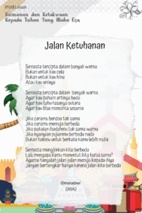 Jalan Ketuhanan Semesta tercipta dalam banyak warna Bukan untuk kau cela Bukan untuk kau hina Atau kau aniaya